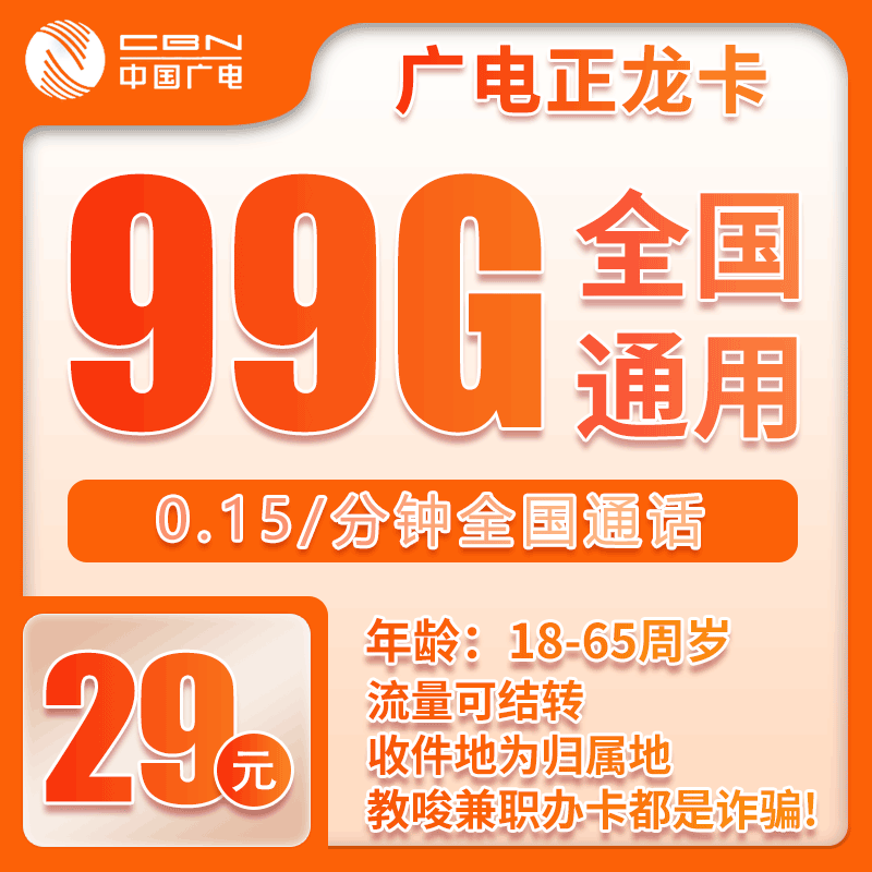 39元包185G通用+100分钟通话(第4个年起49元月租)