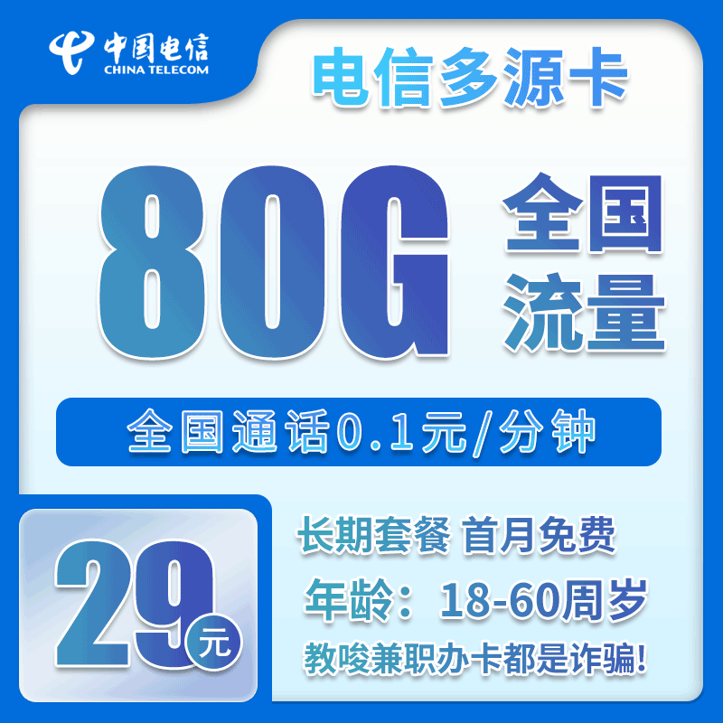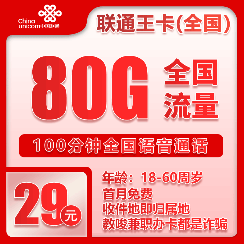 29元包219G通用+100分钟通话(第7个月起39元月租)