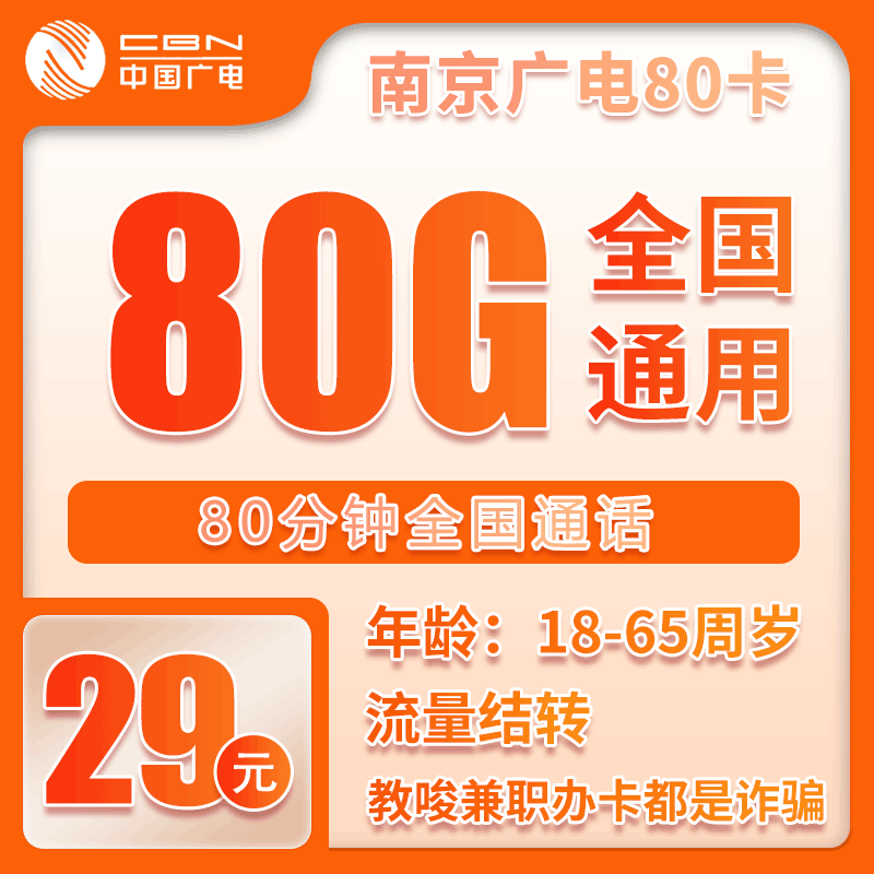 29元包20G通用+30G定向+100分钟通话(第13个月起39元月租)
