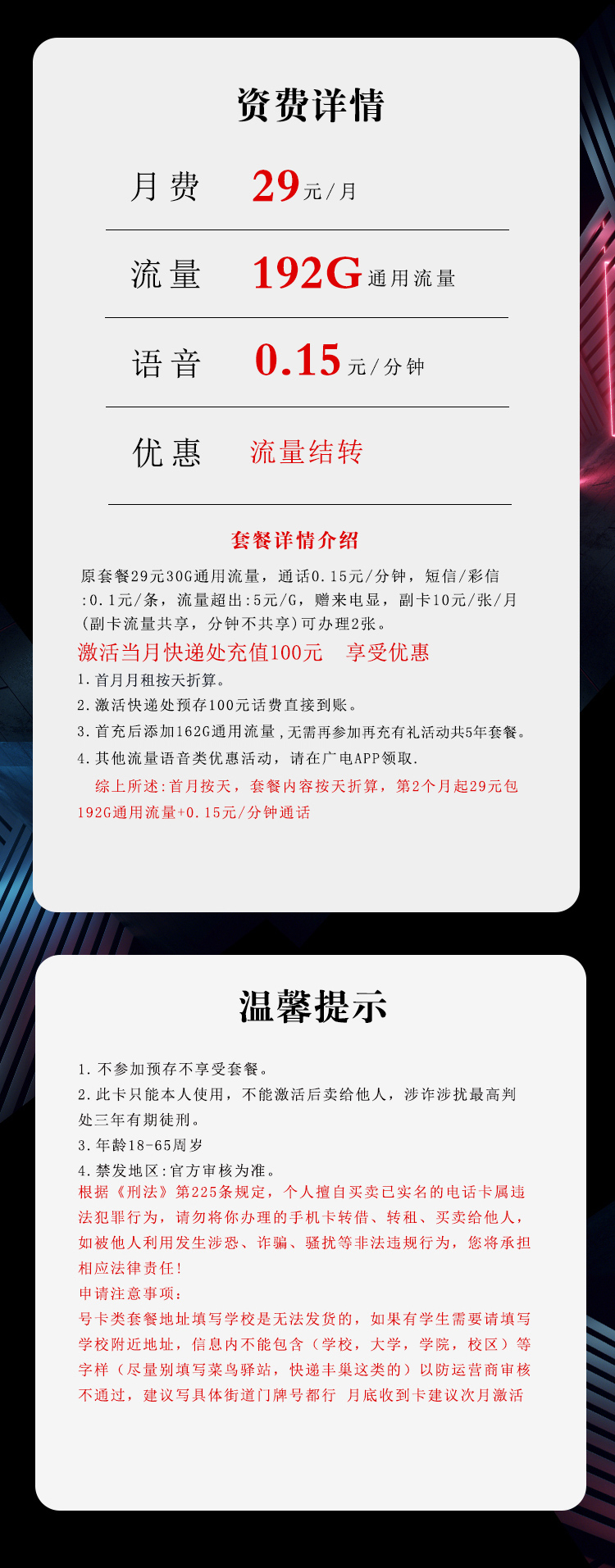 10. 首月折算:首月流量和分钟数按激活剩余天数折算。
