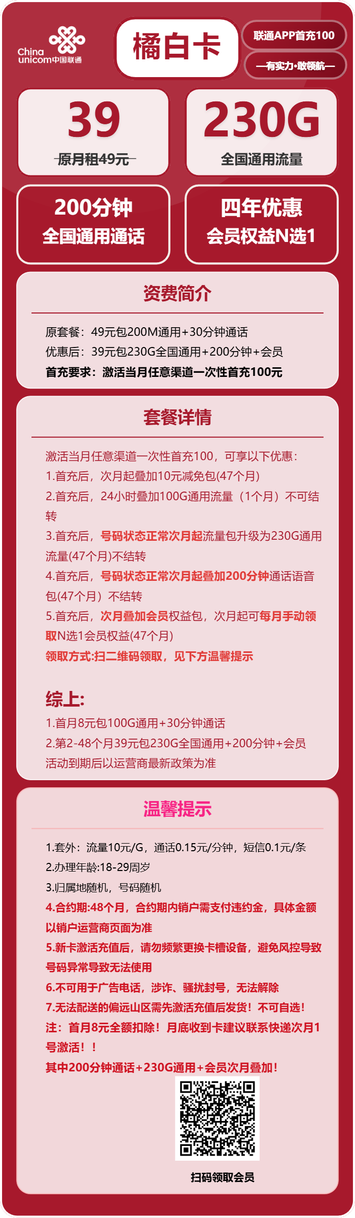 卖点: 18-29周岁 4年套餐 送4年视频会员 仅发四川省内
