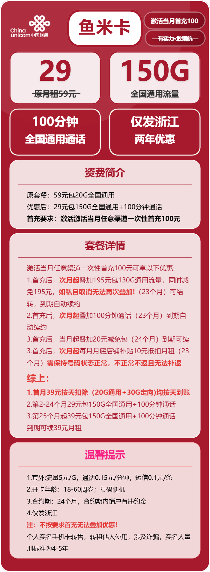 3. 首充:首次充值需按规则在指定链接或快递小哥处完成,才能享受优惠月租。