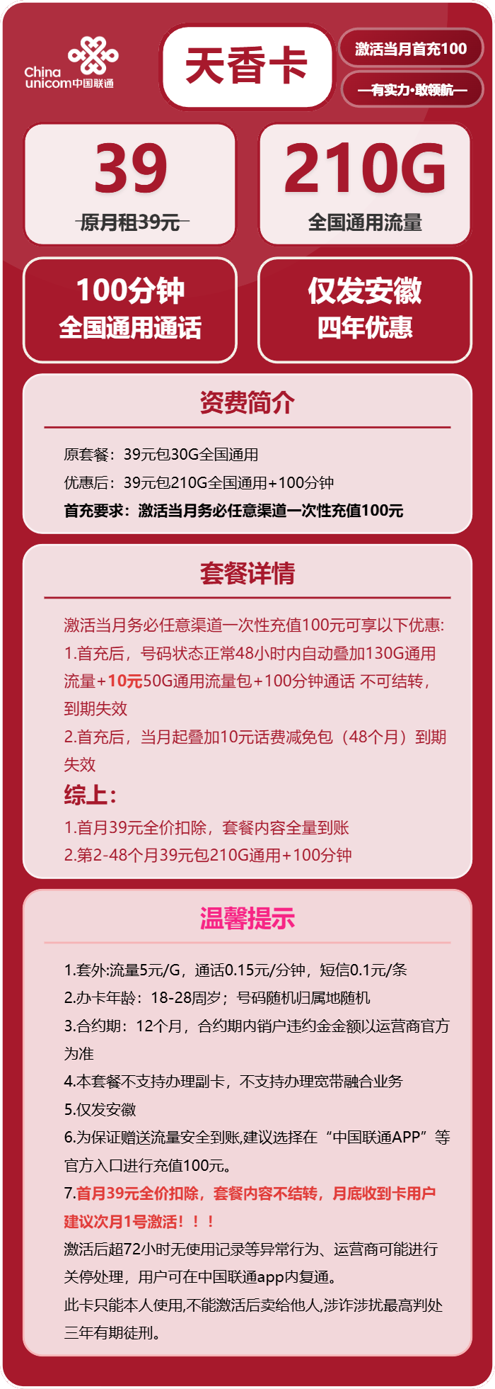 卖点: 18-28周岁 4年套餐 仅发安徽省内